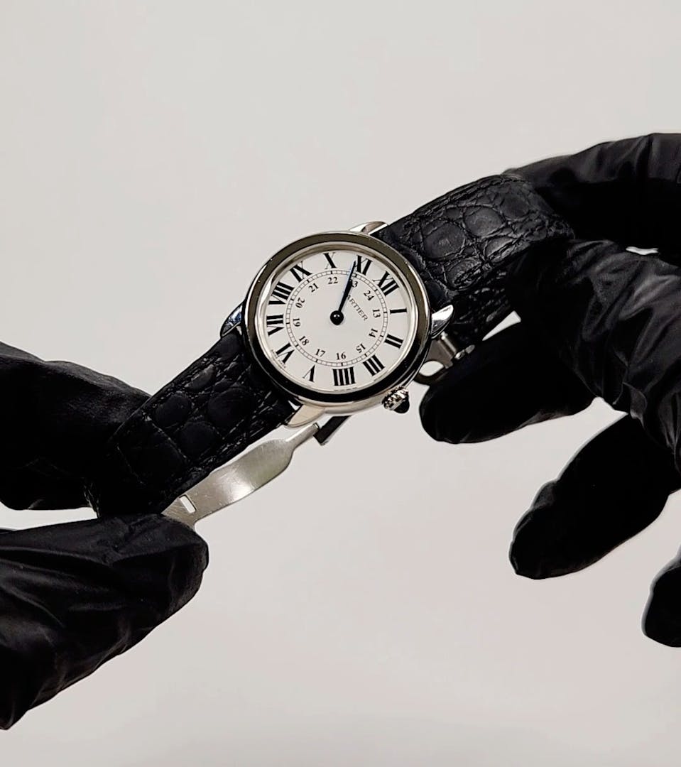 그런데 까르띠에의 원형 시계 중에서도 주목할 만한 모델이 있습니다. 바로 발롱블루와 롱드 솔로입니다. 두 모델은 각각 다른 매력을 지니고 있습니다. 발롱블루는 보석 같은 느낌이 강한 반면, 롱드 솔로는 탱크 머스트와 비슷한 느낌을 줍니다. 롱드 솔로는 플랫한 케이스, 무광 다이얼, 그리고 인덱스까지 탱크 머스트와 유사하며, 스트랩과 버클의 디자인도 일치하는 점이 많습니다. 따라서 원형 시계를 선호하는 까르띠에 팬들에게 롱드 솔로는 주목할 만한 모델입니다.